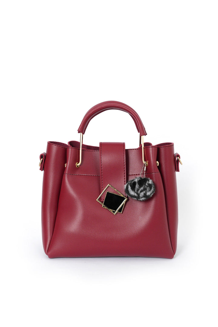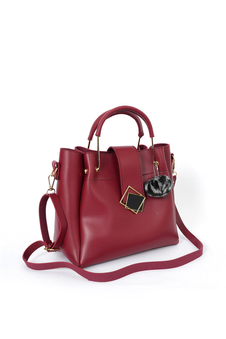 PRADISE 5 Pcs PU Leather Handbag Set, Stylish Lock & Wallets, for Women (Maroon)